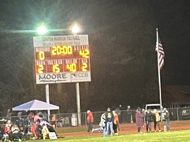 The Canton (PA) varsity football team lost Friday's home conference game against Troy (PA) by a score of 49-6.