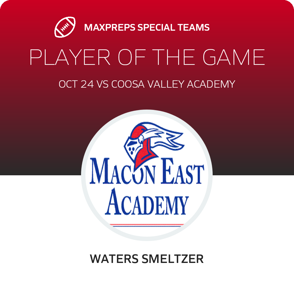 October 24, 2025: Cecil, AL 36013 The Macon-East Montgomery Academy Knights (Cecil, AL) football knocked off the visiting Coosa Valley Academy Rebels (Harpersville, AL), 48-30 in Friday's league outing.