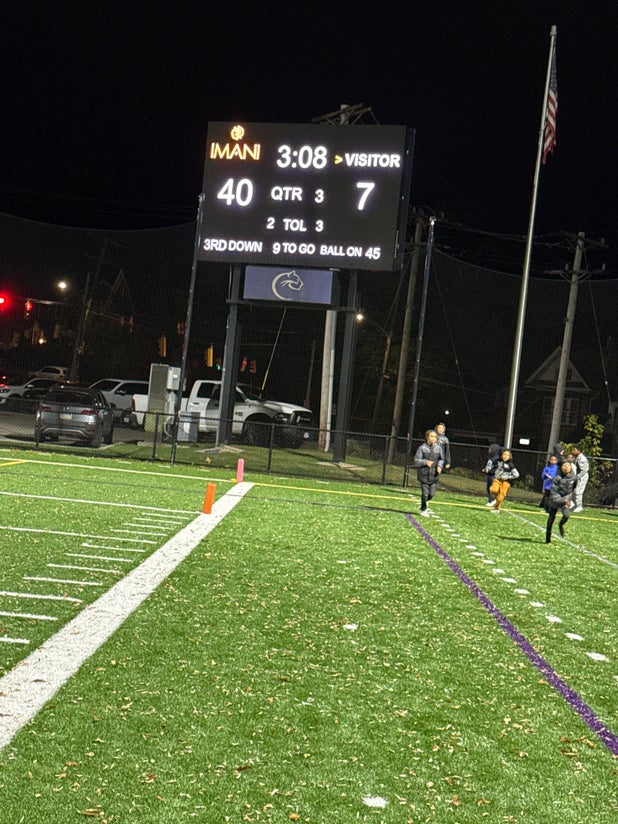October 24, 2025: Pittsburgh, PA 15221 Imani Christian Academy Saints (Pittsburgh, PA) followers went home pleased Friday as they saw their football team triumph over the visiting Freeport Yellowjackets (Freeport, PA), 53-7 in a league battle.