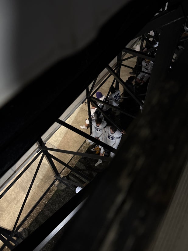 Hoover couldn’t afford a visitor locker room, so Jackson players have resorted to taking shelter under the poor schools bleachers. Thumb dwn