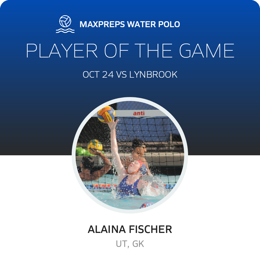 Congratulations to #21 Alaina Fischer for being selected the Santa Teresa Girls Water Polo Player of the Game.