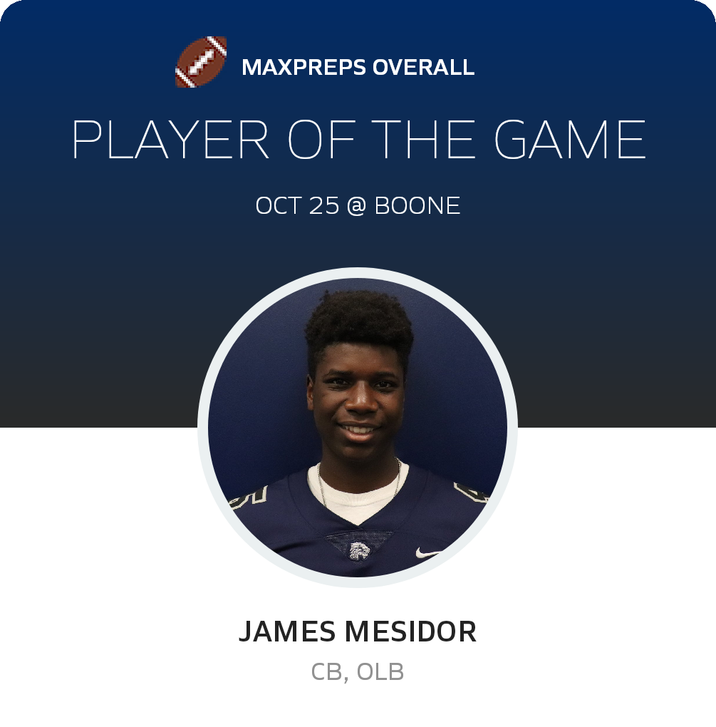 The Braves now own a 5-3 record. They play next when they travel to Oak Ridge for a non-league contest on Thursday, October 27. Boone will encounter a Pioneers squad coming off a 44-8 league loss to Lake Nona (Orlando, FL). The Pioneers record now stands at 1-7.