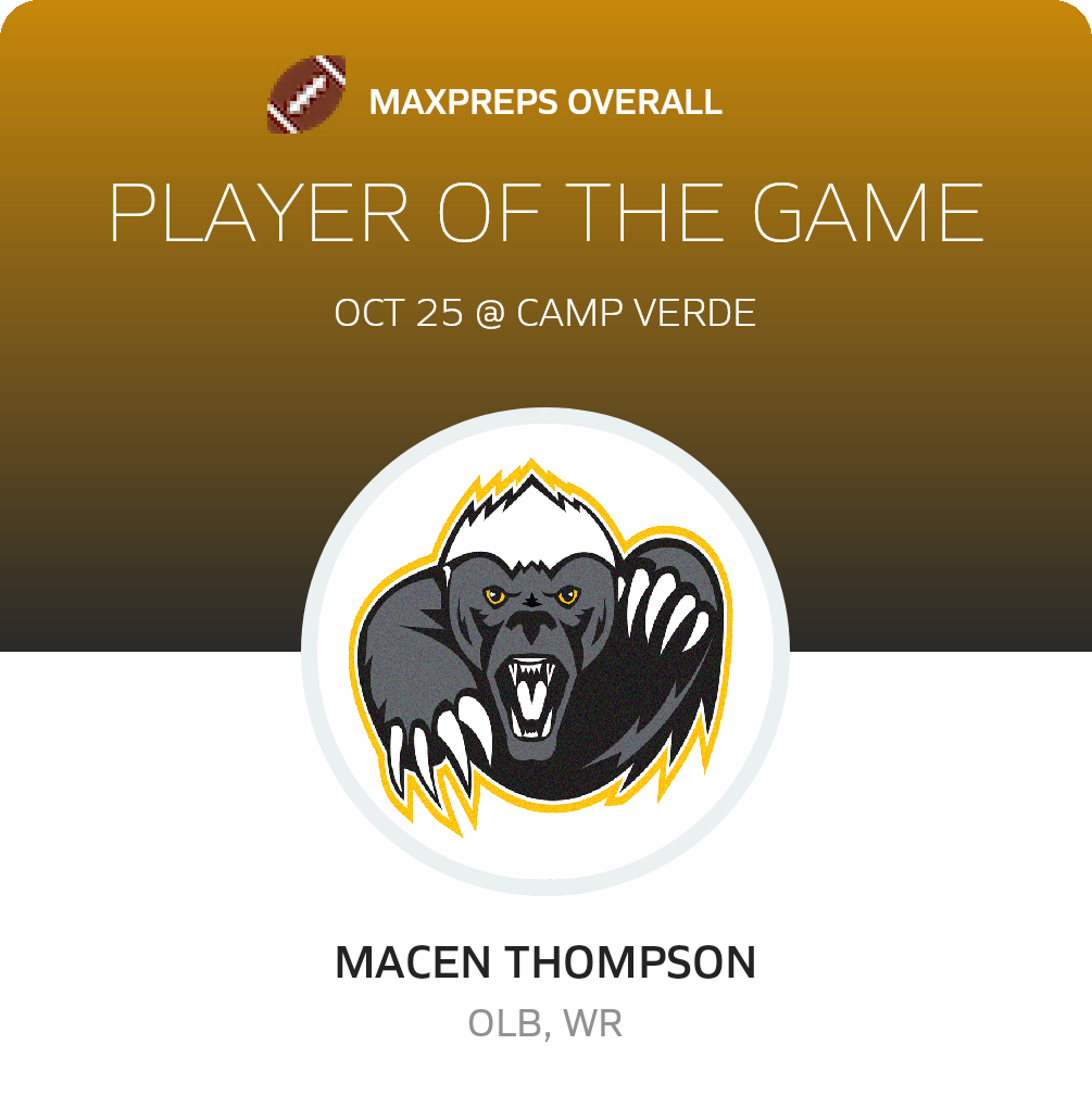 The Honey Badgers (4-5) will now prepare for their challenge against Mountainside (Wittmann, AZ). The Wolves enter the 2A Agua Fria challenge with a 5-4 record. In their last challenge, Mountainside was ripped by Phoenix Christian (Phoenix, AZ), 55-0, in a league challenge.