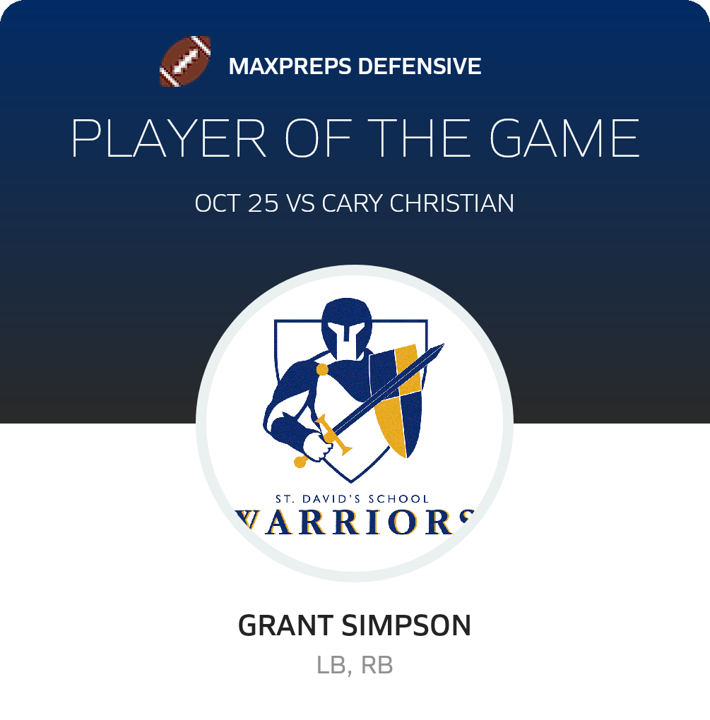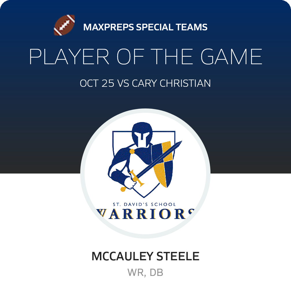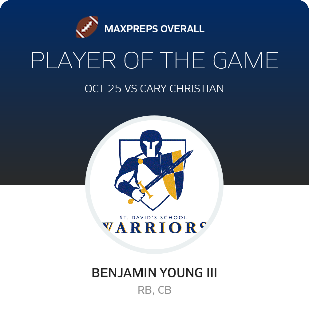 October 25, 2024: Raleigh, NC 27609 The Cary Christian Knights football squad scored 42 points and limited the host St. David's Warriors to 19 in the Knights league triumph on Friday.