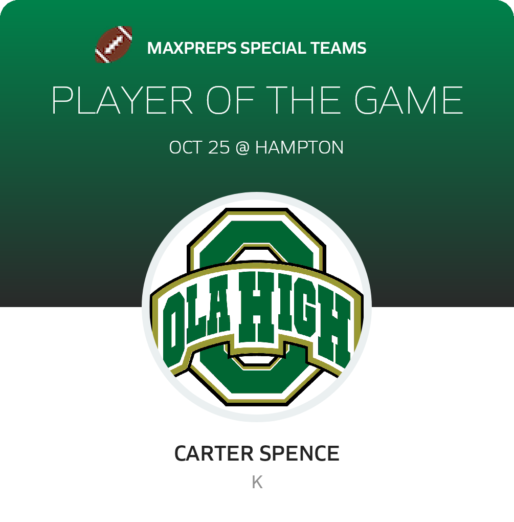 With the win, Ola improves its record to 8-1 on the season. The Mustangs host McDonough (McDonough, GA) to play the Warhawks in a AAAA Region 2 battle on Friday, November 1. The Warhawks go into the battle with a record of 0-9. McDonough lost 42-27 in their recent league battle against Woodland (Stockbridge, GA)