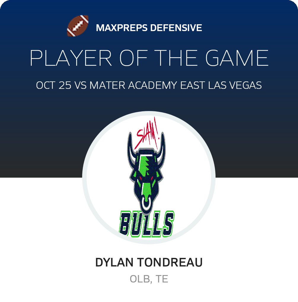 October 25, 2024: Henderson, NV 89011 In Friday's league game, the Sports Leadership & Management Bulls (Henderson, NV) football team overcame the visiting Mater Academy East Las Vegas Knights (Las Vegas, NV), by a tally of 33-21.