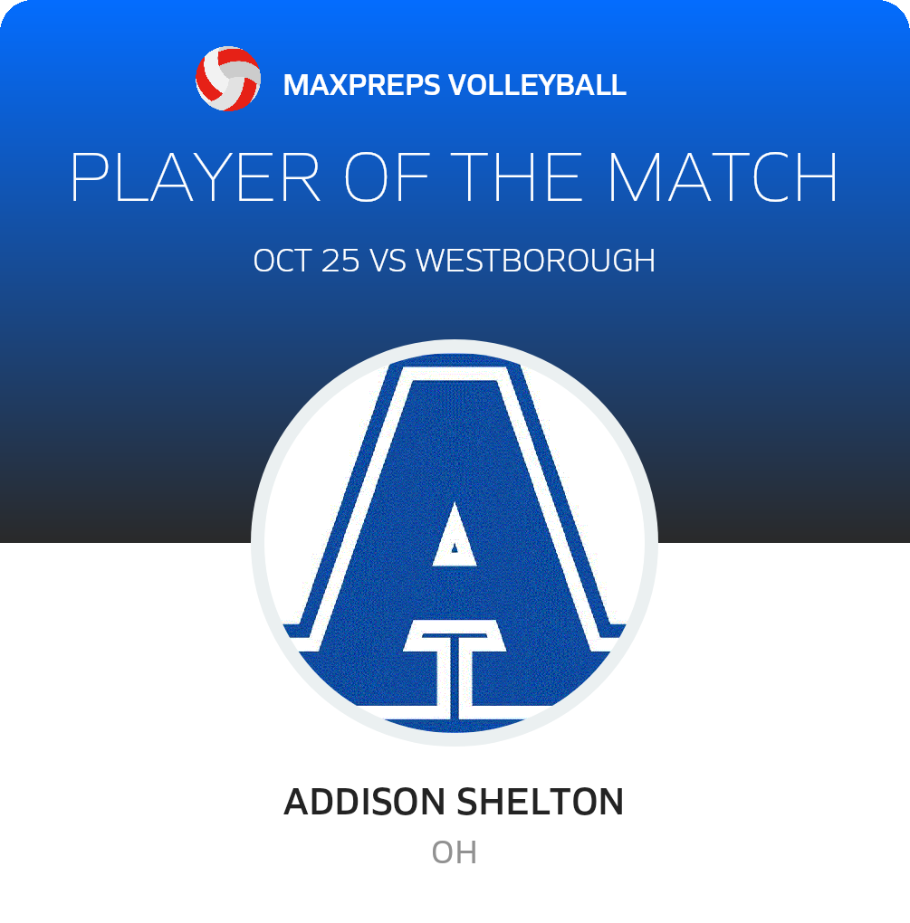 Congratulations to #18 Addison Shelton for being selected the Attleboro Volleyball Player of the Match.
