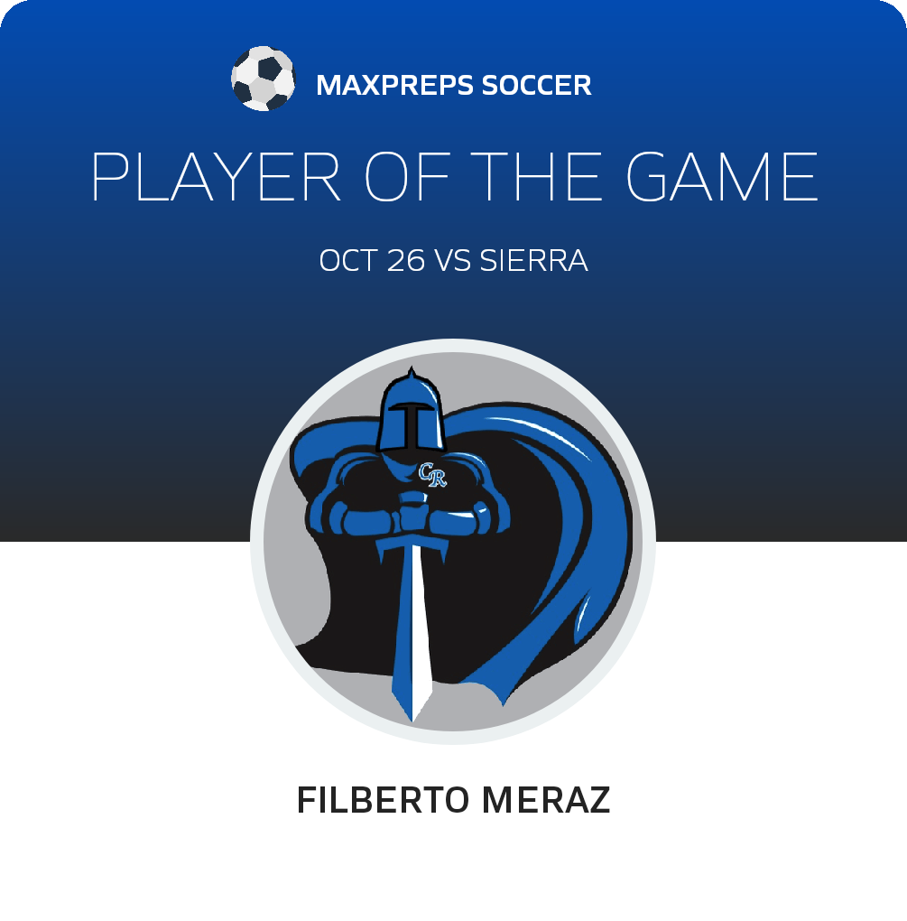 Congratulations to #19 Filberto Meraz for being selected the Coal Ridge Soccer Player of the Match.