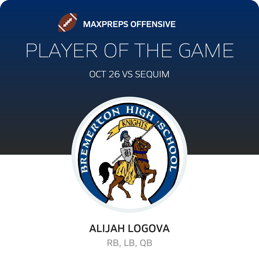 October 26, 2023: Bremerton, WA 98337 The Bremerton Knights (Bremerton, WA) football routed the visiting Sequim Wolves (Sequim, WA), 62-17 in Thursday's league bout.