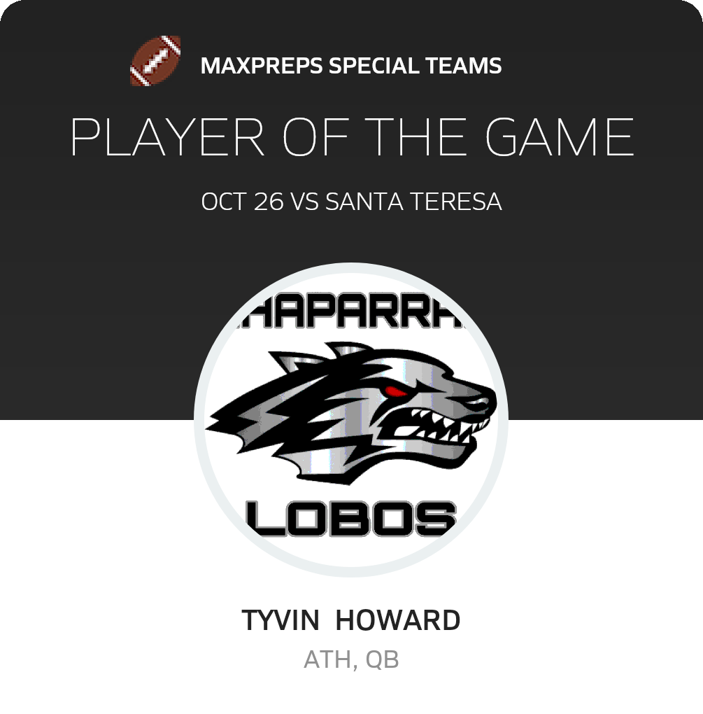 With the loss, Chaparral drops to 0-9 on the campaign. The Lobos host Santa Teresa (Santa Teresa, NM) to confront the Desert Warriors in a 5A District 3 test on Thursday, October 26. The Desert Warriors come into the test with a record of 0-9. Santa Teresa lost 28-7 in their recent league test against Gadsden (Anthony, NM)