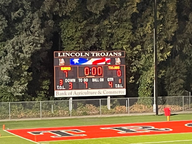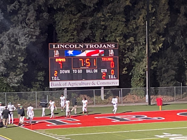 October 26, 2023: Stockton, CA 95207 In Thursday's league game, the St. Mary's Rams (Stockton, CA) football team tipped the host Lincoln Trojans (Stockton, CA), by a final score of 7-0.
