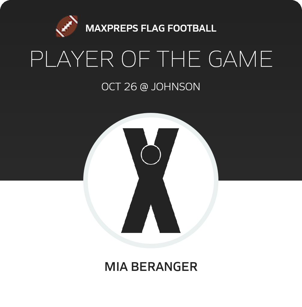 Congratulations to #4 Mia Beranger for being selected the Groves Girls Flag Football Player of the Game.