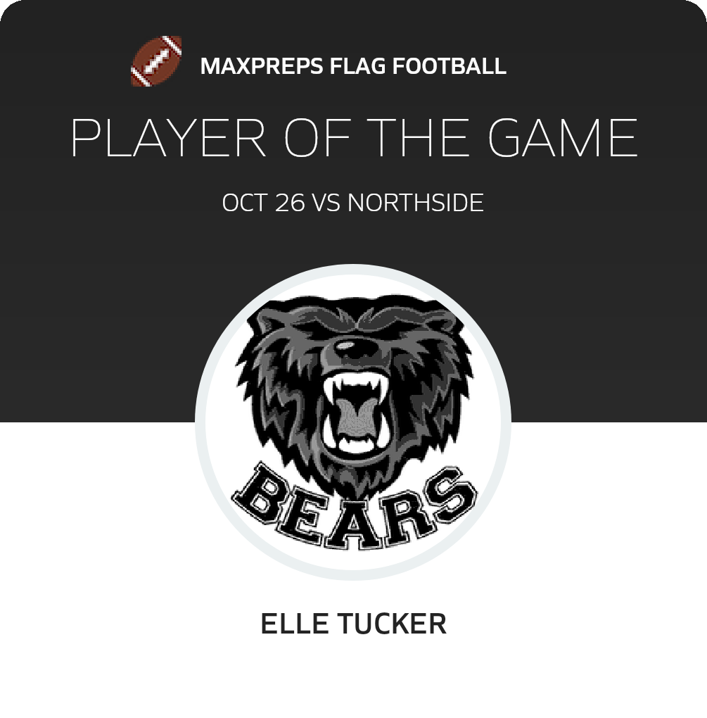 Congratulations to #3 Elle Tucker for being selected the Houston County Girls Flag Football Player of the Game.