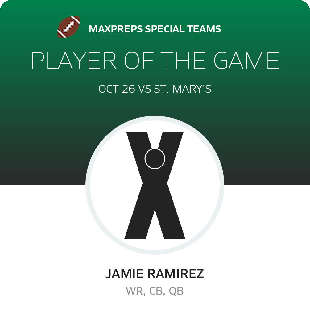 Congratulations to #11 Jamie Ramirez (overall, offensive and special teams) and #6 Lukas Dibenedetto (defensive) for being selected the St. Paul's Prep Football Players of the Game.