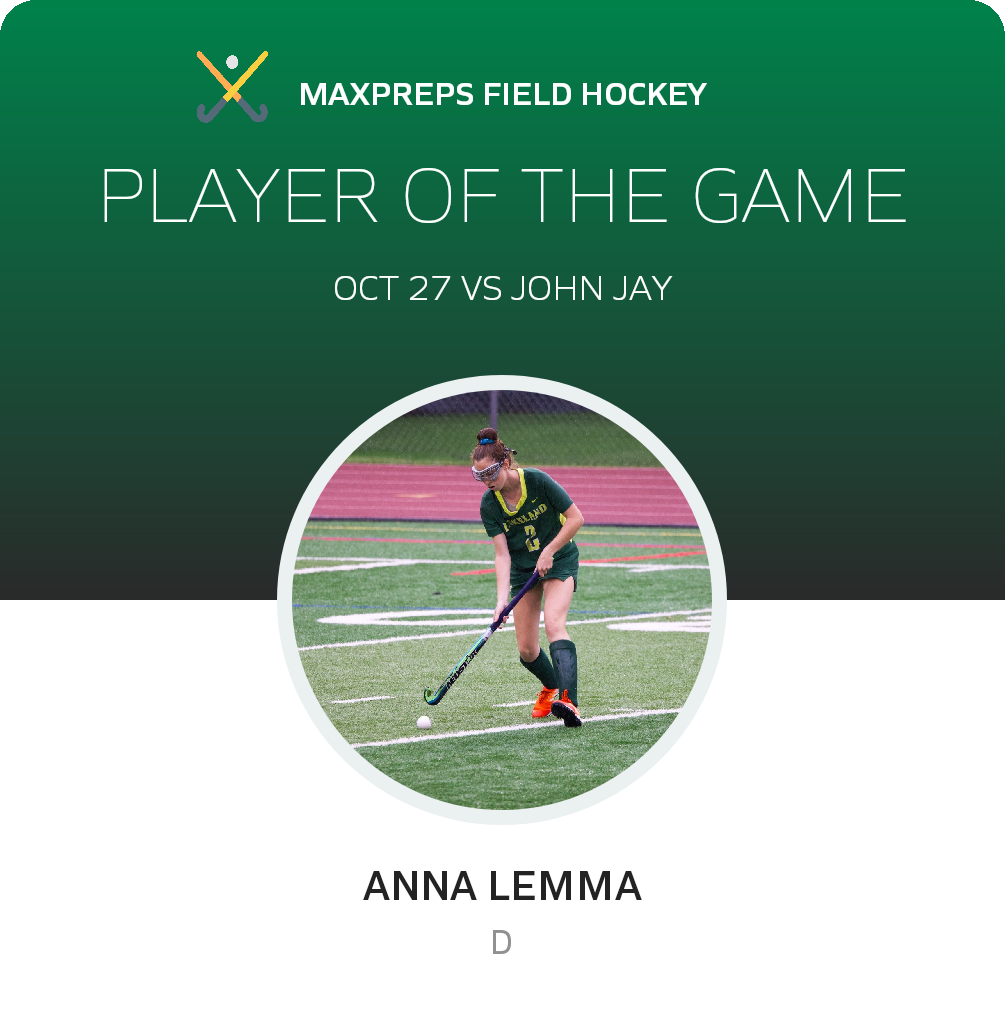 Congratulations to #2 Anna Lemma for being selected the Lakeland Field Hockey Player of the Game.