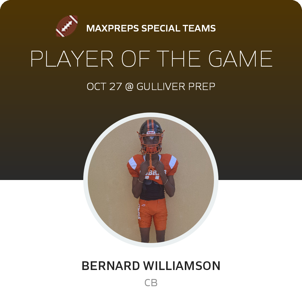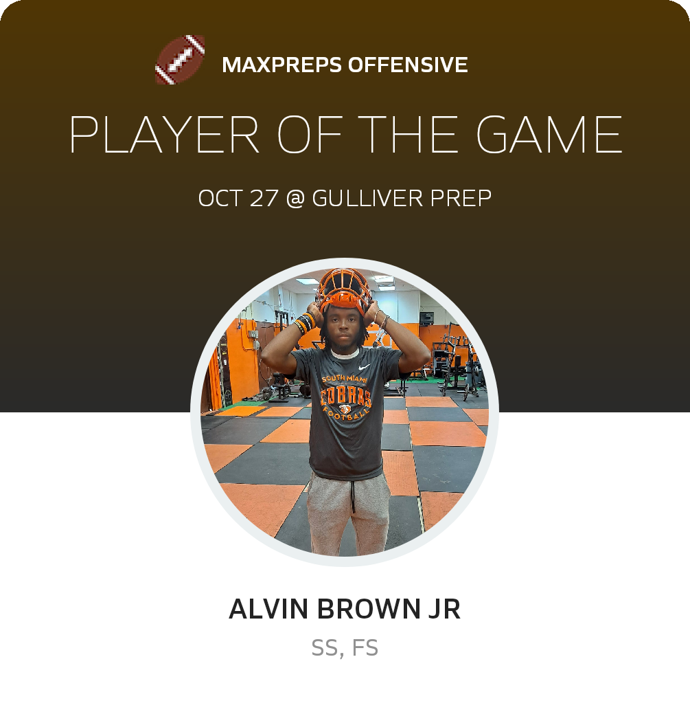 With the loss, South Miami moves to 4-4 on the season. The Cobras host Miami (Miami, FL) to confront the Stingarees in a non-league test on Tuesday, November 1. The Stingarees go into the test with a record of 4-4. Miami lost 38-19 in their recent league test against Doral Academy (Doral, FL)