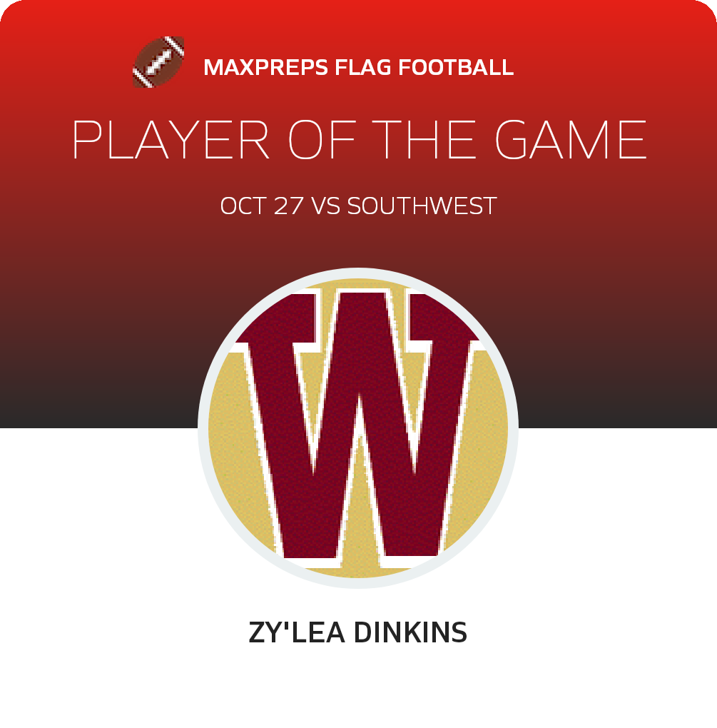 Congratulations to #1 Zy'Lea Dinkins for being selected the Westside Girls Flag Football Player of the Game.