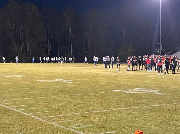 Timeout Powell County. Betsy Layne has the ball on their own 45 yard line. 3rd & 10 with 1:51 remaining in the game