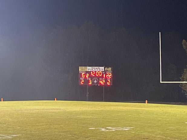 37 yard fumble recovery by Powell County negated by False Start penalty. Pirates have the ball on their own 44 yard line
