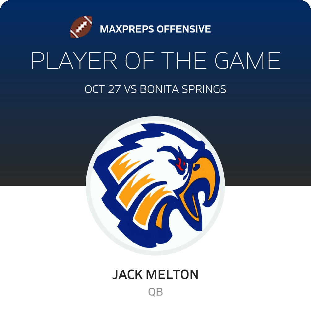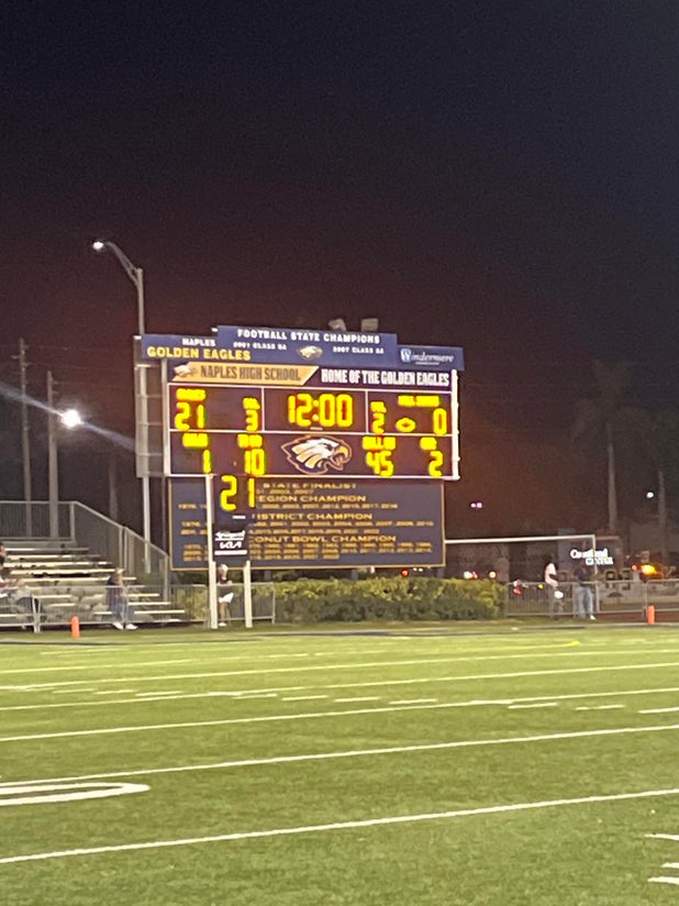 October 27, 2023: Naples, FL 34102 The Naples Golden Eagles (Naples, FL) football routed the visiting Bonita Springs Bullsharks (Bonita Springs, FL), 41-6 in Friday's league bout.