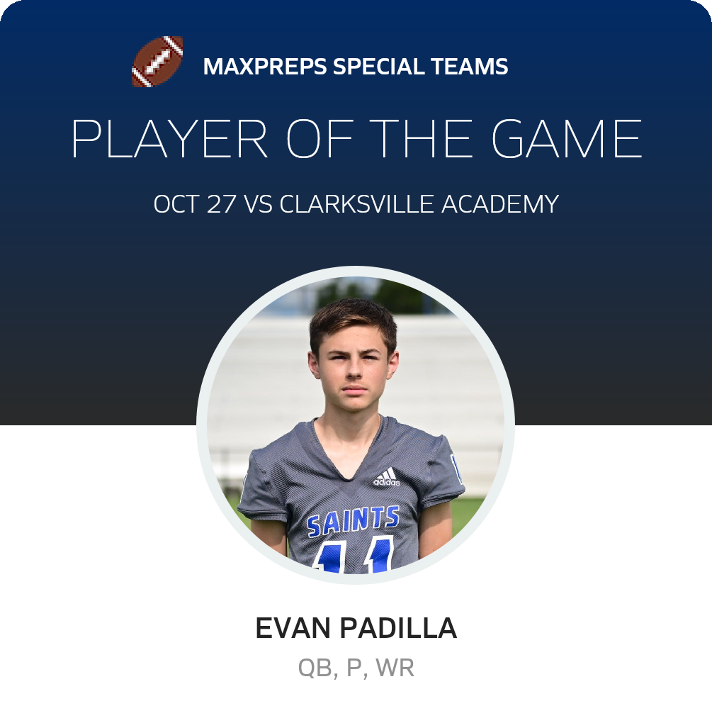 In their next game, the Saints face the Donelson Christian Academy Wildcats (Nashville, TN) in a non-league bout, on Friday, November 3. Mount Juliet Christian Academy will attempt to advance on its 4-6 season record. The Wildcats enter the bout with a 6-4 record after their 35-17 league win over Nashville Christian (Nashville, TN).