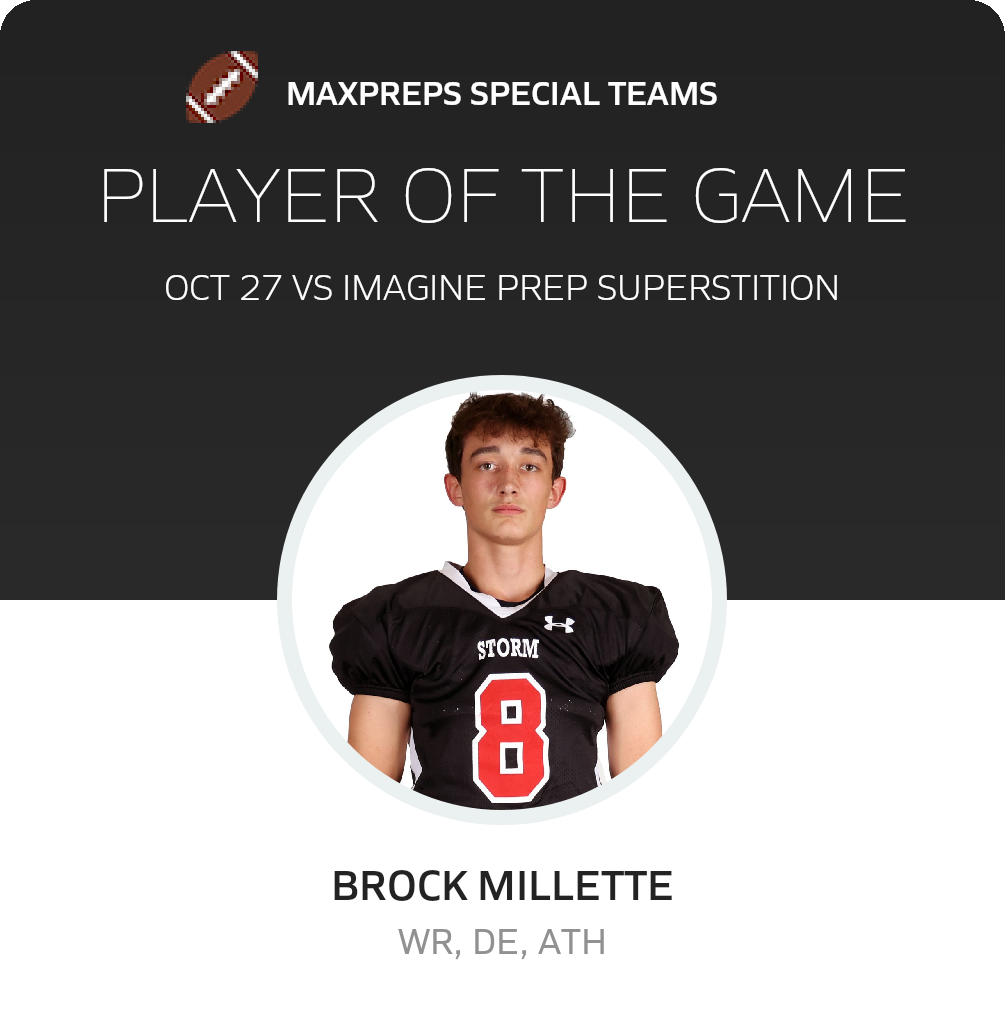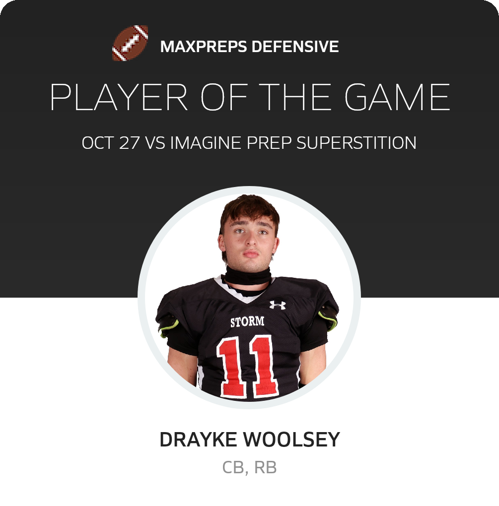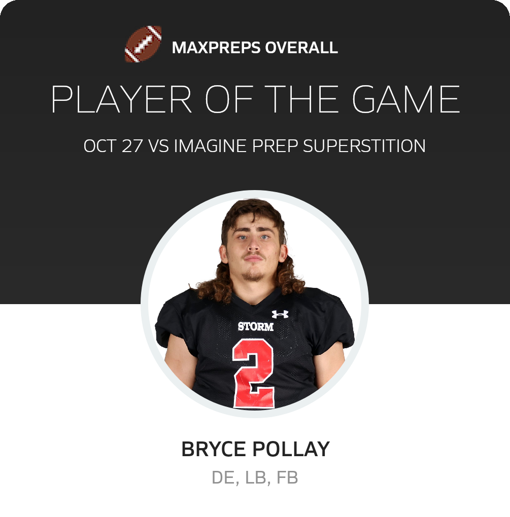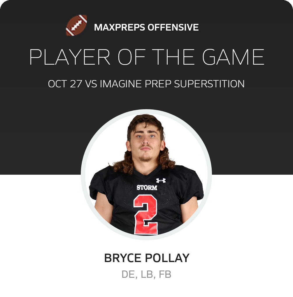 Congratulations to #2 Bryce Pollay (overall and offensive), #11 Drayke Woolsey (defensive) and #8 Brock Millette (special teams) for being selected the Imagine Prep Football Players of the Game.