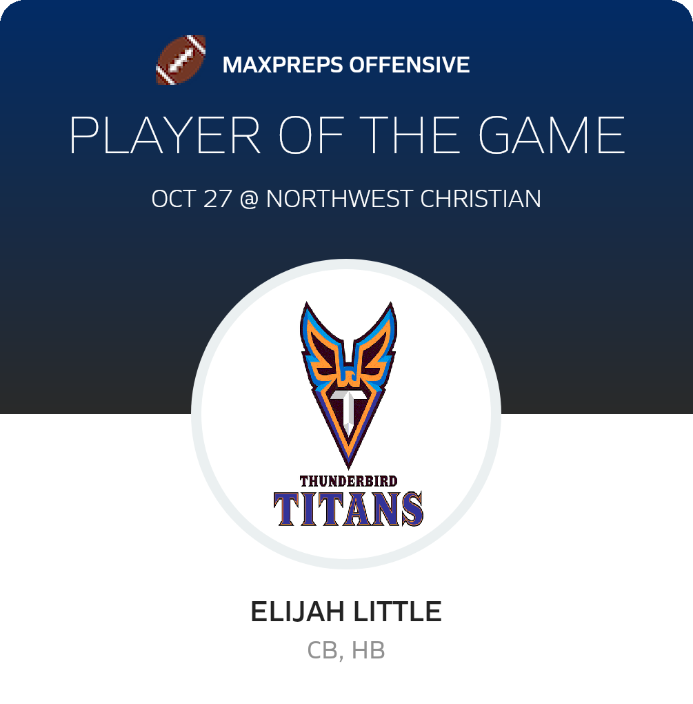 October 27, 2023: Phoenix, AZ 85053 The Thunderbird Titans held off the host Northwest Christian Crusaders football team by a count of 27-20 in Friday's league outing.
