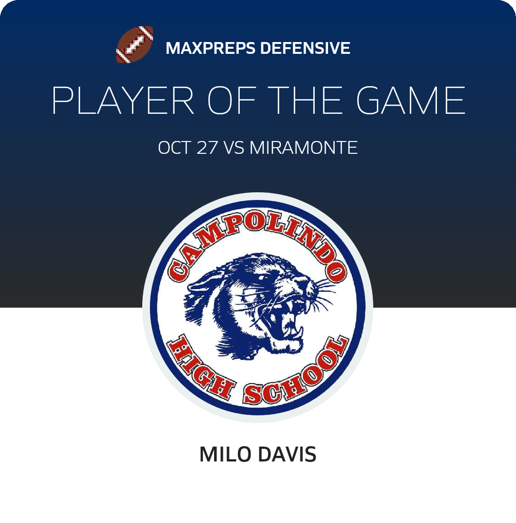 The Matadors now sport a 7-2 record. They take the field next when they host Las Lomas for a challenge on Friday, November 3. Miramonte will meet a Knights team coming off a 24-21 league loss to Acalanes (Lafayette, CA). The Knights record now stands at 6-3.