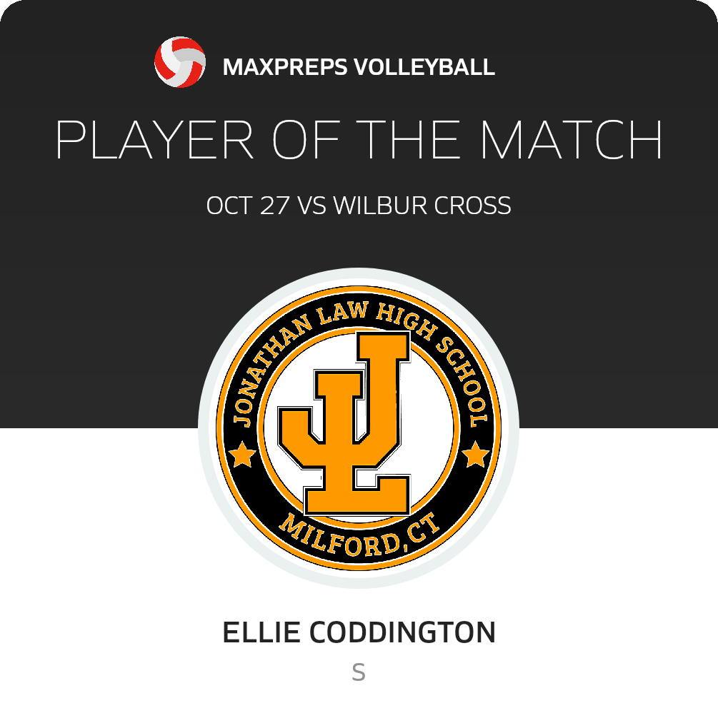 The Law (Milford, CT) varsity volleyball team lost Friday's home conference tournament match against Wilbur Cross (New Haven, CT) by a score of 3-1.