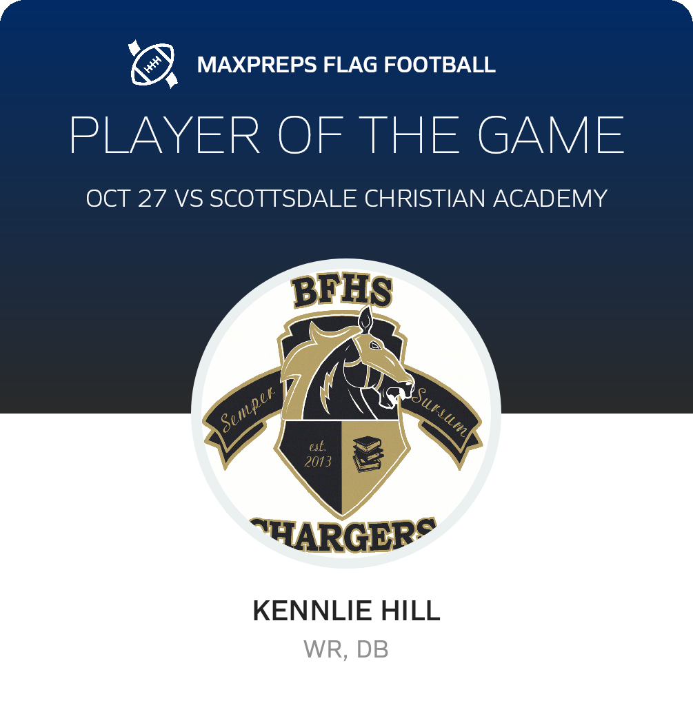 October 27, 2025: Queen Creek, AZ 85142 The Scottsdale Christian Academy Eagles were victorious over the host Benjamin Franklin Chargers flag football team by a score of 32-7 in Monday's non-league challenge.