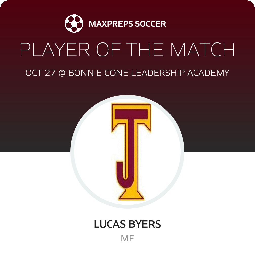 Congratulations to #28 Lucas Byers for being selected the Thomas Jefferson Classical Academy Soccer Player of the Match.