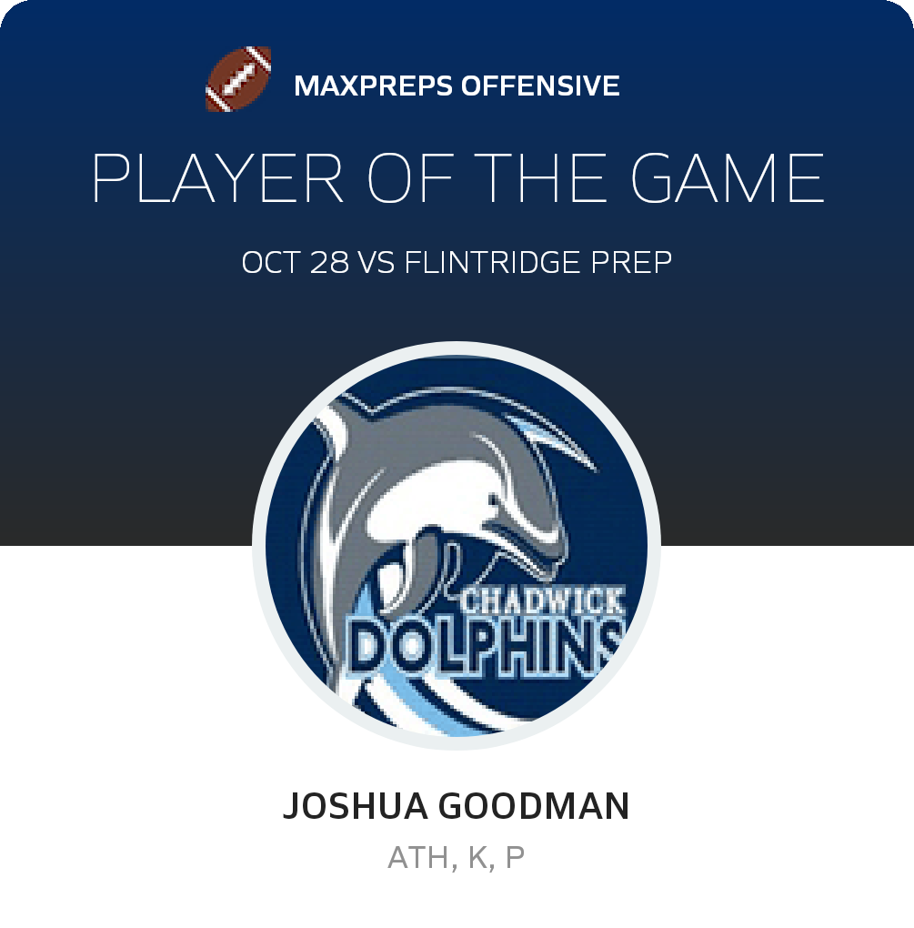 October 28, 2022: Palos Verdes Peninsula, CA 90274 The Chadwick Dolphins football squad scored 44 points and restricted the visiting Flintridge Prep Wolves to 27 in the Dolphins league victory on Friday.