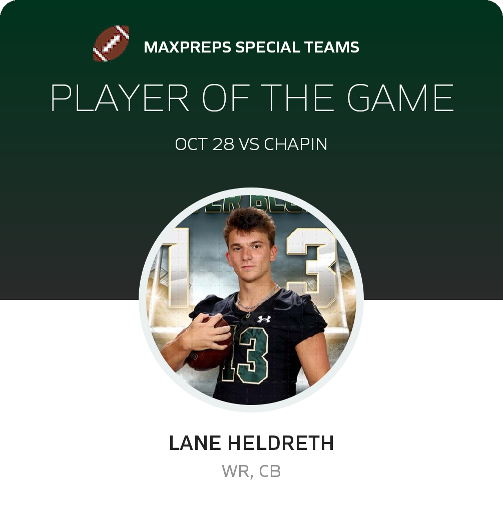 Coming up next, the Eagles play the Sumter Fighting Gamecocks (Sumter, SC) in a non-league contest, on Friday, November 4. Chapin will attempt to advance on its 3-7 season record. The Fighting Gamecocks go into the contest with a 9-1 record after their 45-0 league win over Conway (Conway, SC).