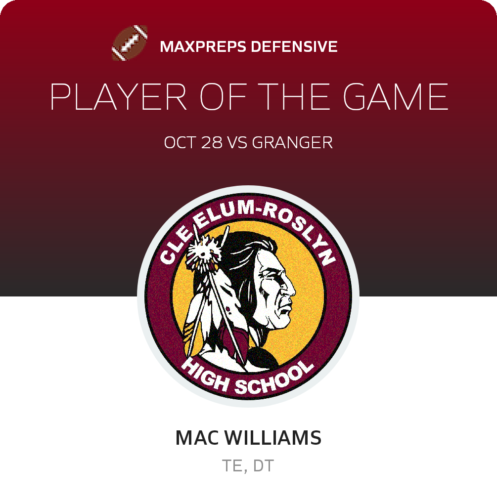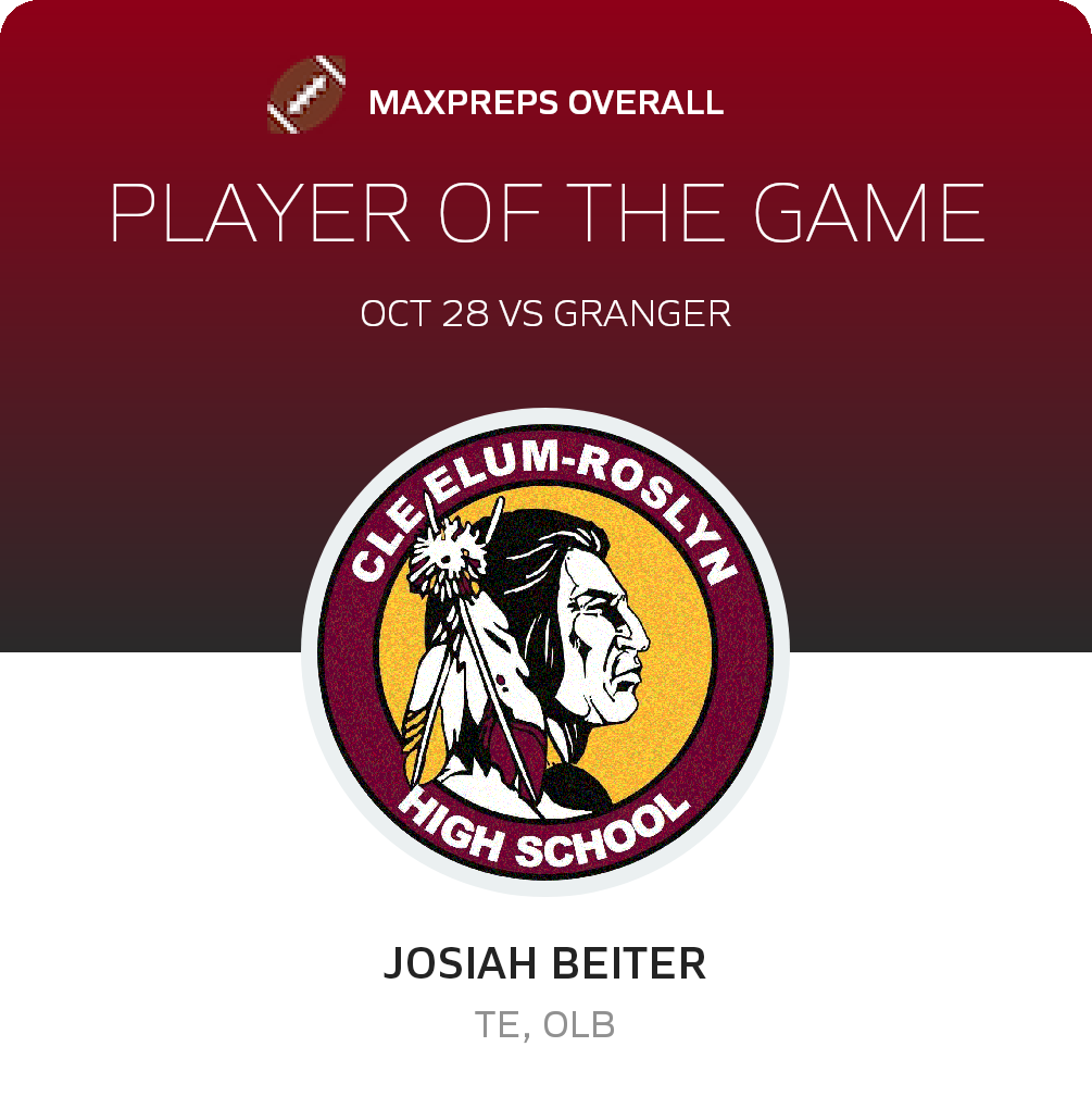 Congratulations to #55 Josiah Beiter (overall), #24 Mason Hilberg (offensive) and #87 Mac Williams (defensive) for being selected the Cle Elum-Roslyn Football Players of the Game.