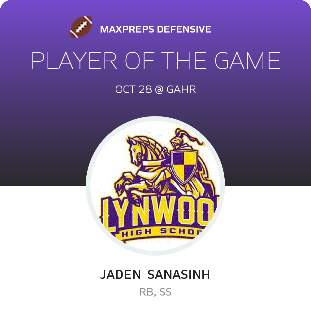 October 28, 2022: Cerritos, CA 90703 The Gahr Gladiators football squad scored 31 points and restricted the visiting Lynwood Knights to 8 in the Gladiators league victory on Friday.