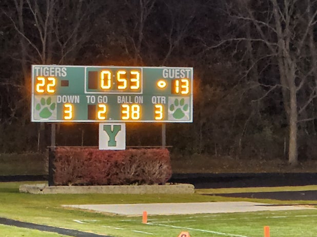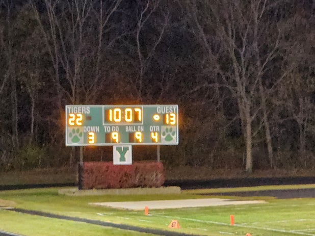 October 28, 2022: Yorktown, IN 47396 In Friday's non-league game, the Yorktown Tigers (Yorktown, IN) football team knocked off the visiting Garrett Railroaders (Garrett, IN), by a score of 22-13.