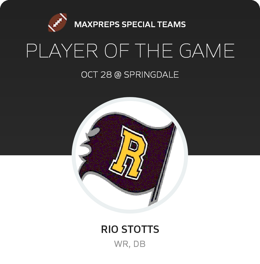 Congratulations to #33 Landon Johnson (overall), #21 Carlo Buzzatto (offensive), #55 Liam McElligott (defensive) and #13 Rio Stotts (special teams) for being selected the Riverview Football Players of the Game.