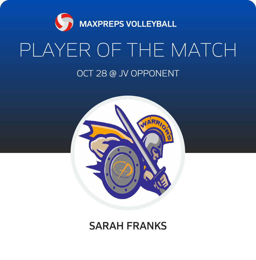 Congratulations to #23 Sarah Franks for being selected the Calvary Academy JV Volleyball Player of the Match.