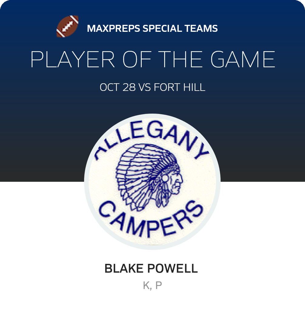 October 28, 2023: Cumberland, MD 21502 The Fort Hill Sentinels (Cumberland, MD) football overcame the host Allegany Campers (Cumberland, MD), 47-21 in Saturday's league bout.