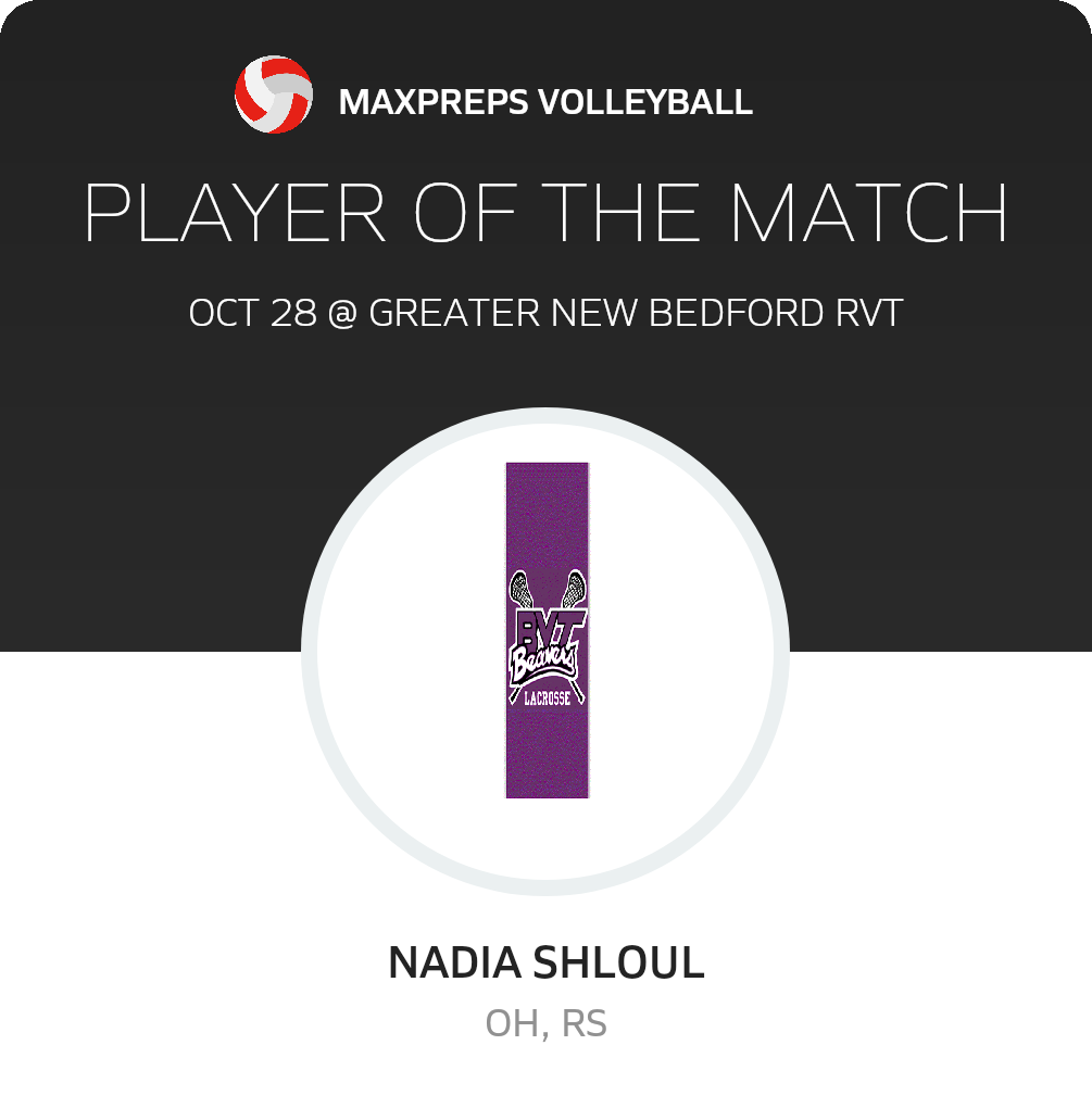 Congratulations to #22 Nadia Shloul for being selected the Blackstone Valley RVT Volleyball Player of the Match.