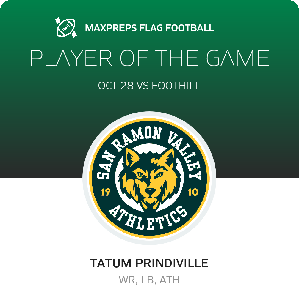October 28, 2025: Pleasanton, CA 94588 The San Ramon Valley Wolves flag football squad scored 13 points and limited the host Foothill Falcons to 7 in the Wolves non-league triumph on Tuesday.