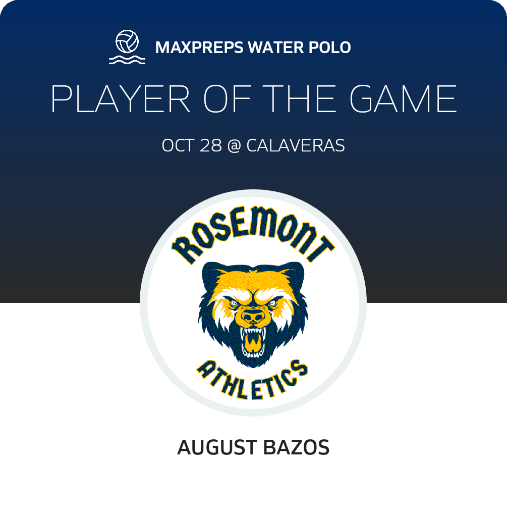 Congratulations to #7 August Bazos for being selected the Rosemont Water Polo Player of the Game.