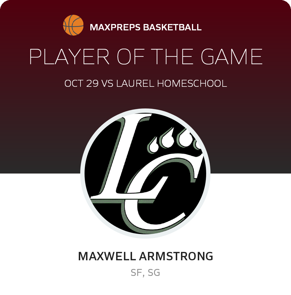 Congratulations to #1 Maxwell Armstrong for being selected the Lamar Christian Basketball Player of the Game.
