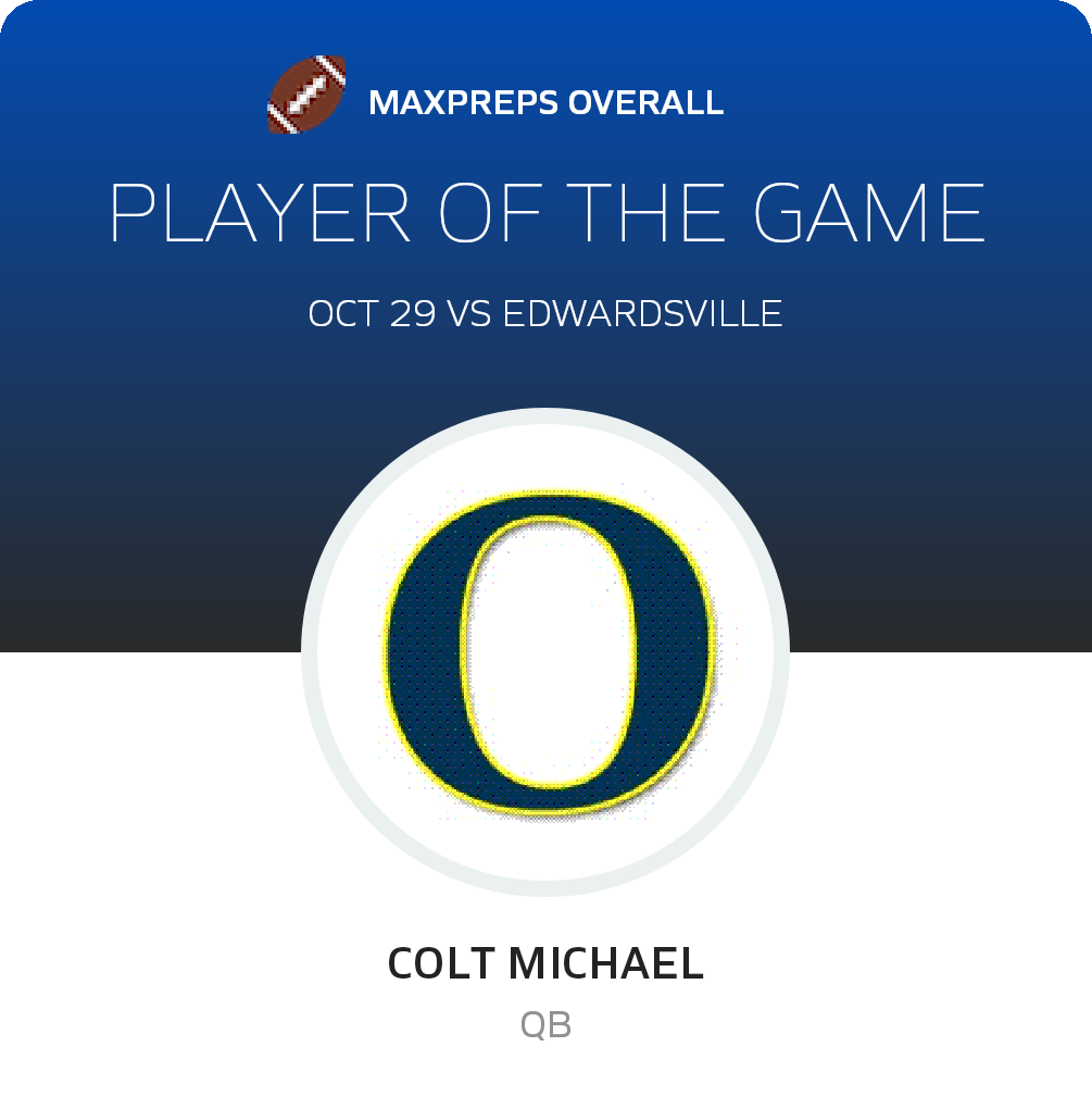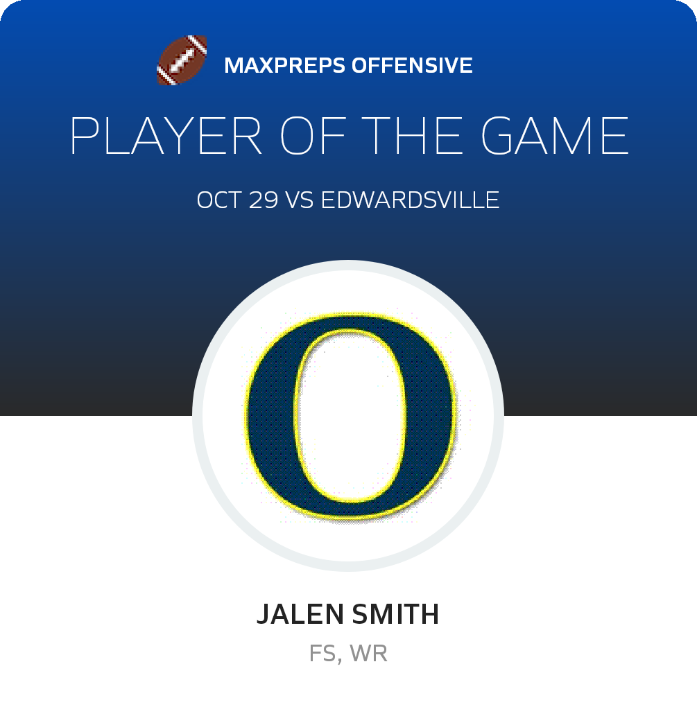 Congratulations to #5 Colt Michael (overall), #1 Jalen Smith (offensive), #26 Zach Novy (defensive) and #11 Chris Caldwell (special teams) for being selected the O'Fallon Football Players of the Game.