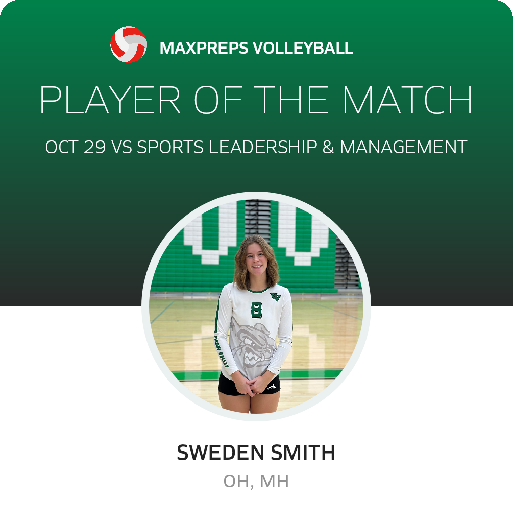 Congratulations to #8 Sweden Smith for being selected the Virgin Valley Volleyball Player of the Match.
