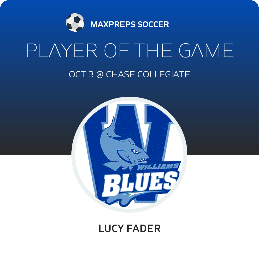 Congratulations to #12 Lucy Fader for being selected the The Williams School Girls Soccer Player of the Match.