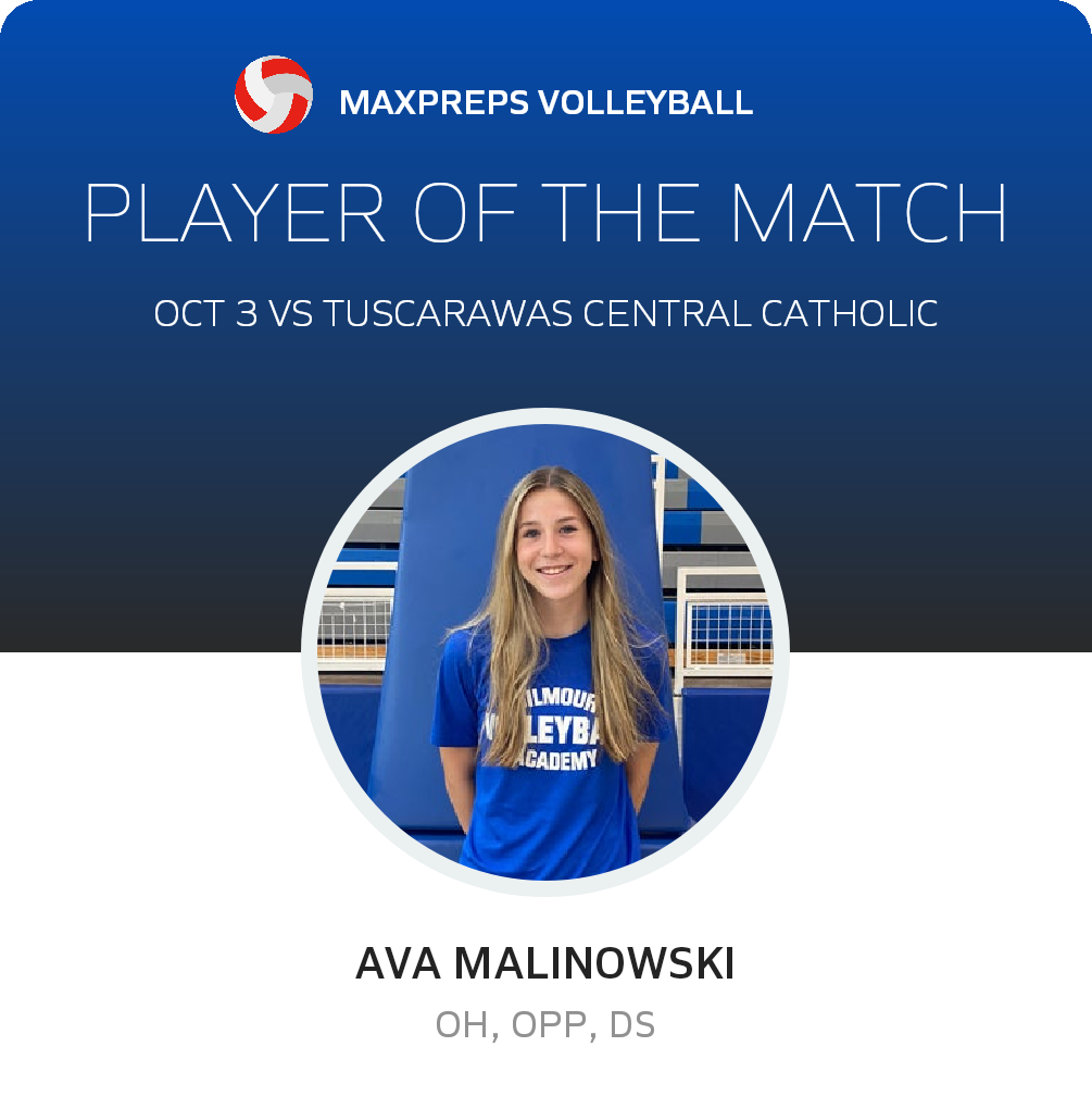 Congratulations to #9 Ava Malinowski for being selected the Gilmour Academy Volleyball Player of the Match.