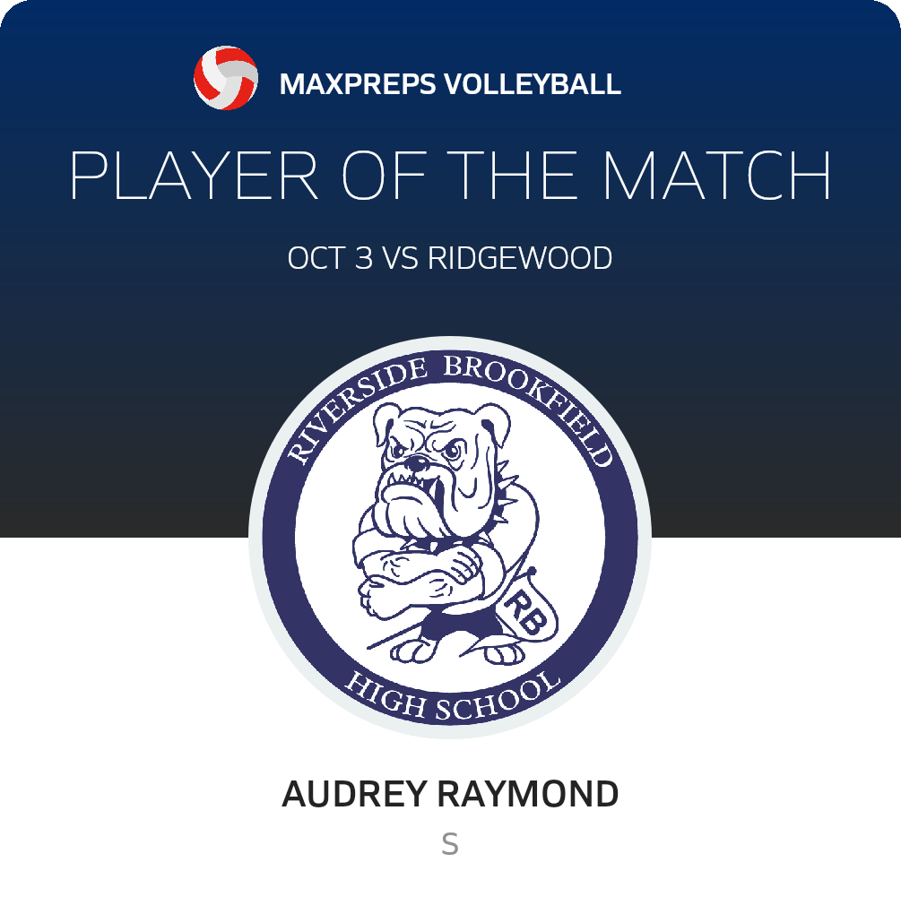 Congratulations to #11 Audrey Raymond for being selected the Riverside-Brookfield JV Volleyball Player of the Match.