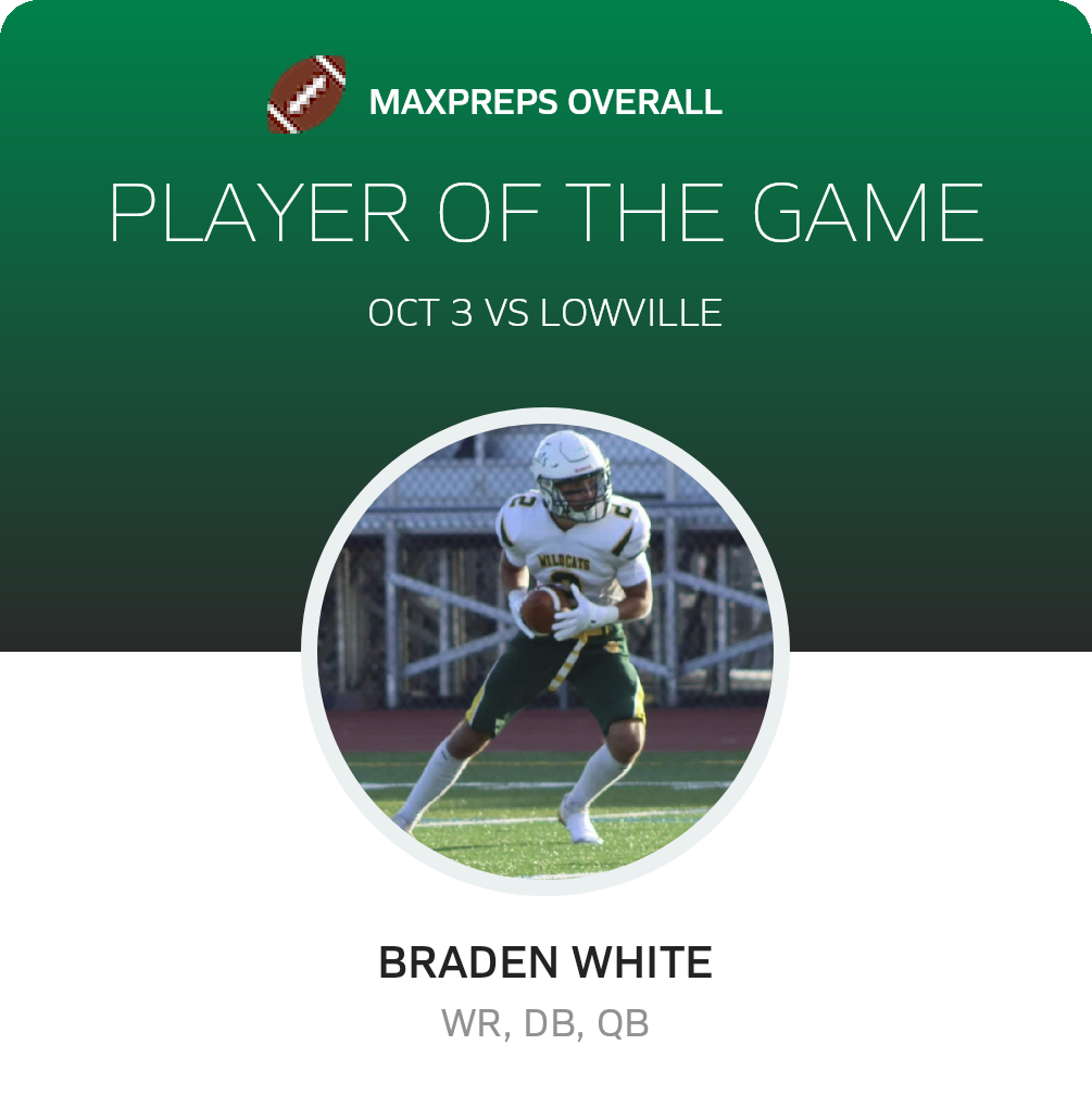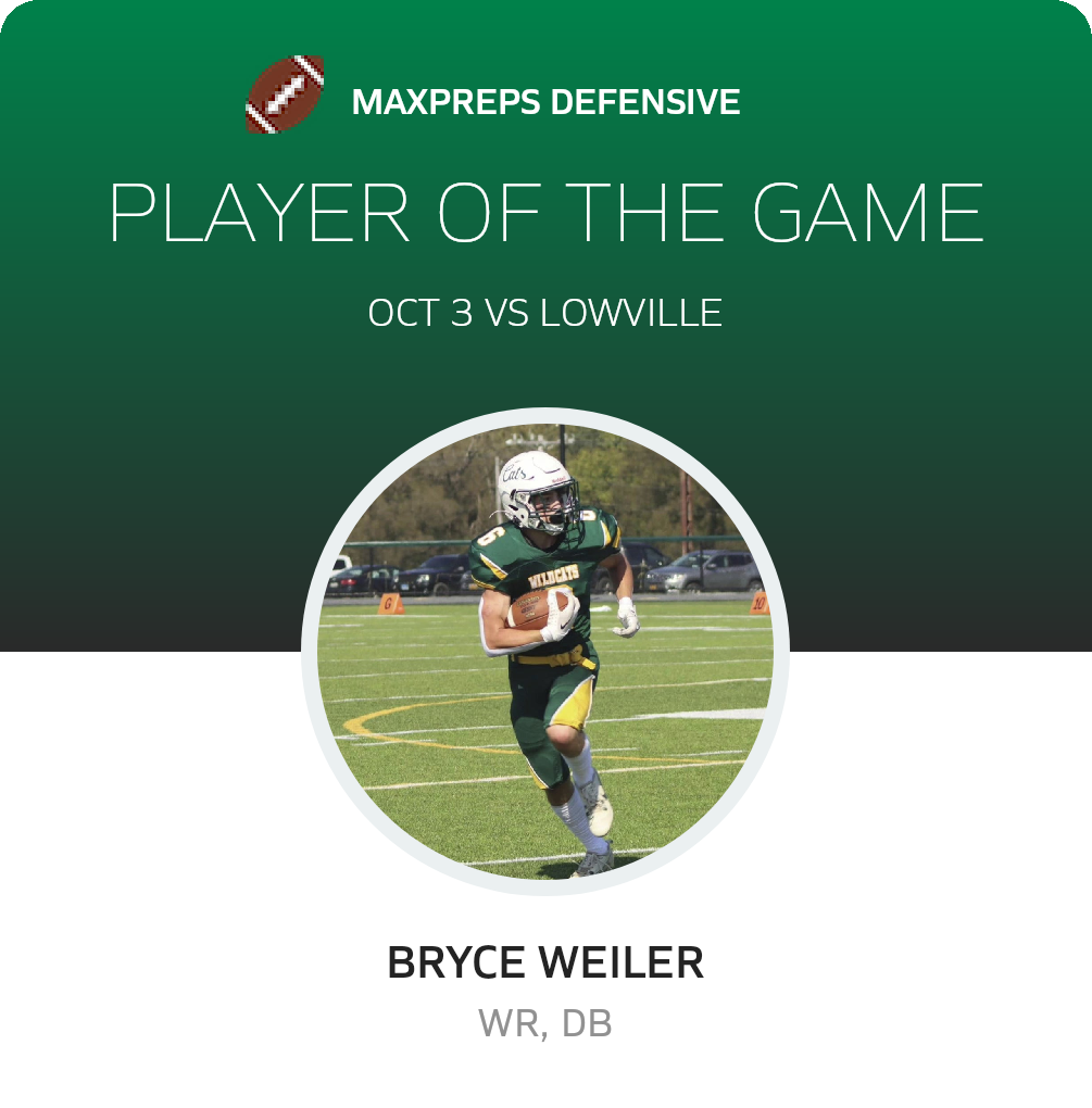 October 3, 2024: Boonville, NY 13309 The Adirondack Wildcats football team (Boonville, NY), was tipped 20-16 in Thursday's league bout with the visiting Lowville Red Raiders (Lowville, NY)