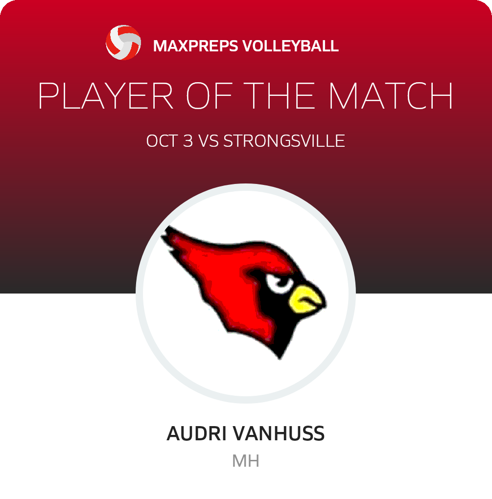 Congratulations to #20 Anna Painter for being selected the Strongsville Volleyball Player of the Match.